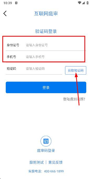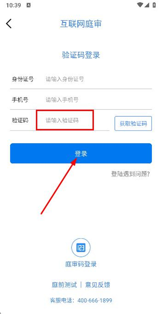 3、在驗證碼登錄頁面輸入驗證碼后,點擊登錄按鈕完成互聯(lián)網(wǎng)庭審的登錄操作。