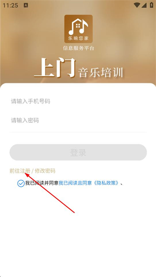 2、在樂響您家登錄頁面,點擊前往注冊/修改密碼選項,進入注冊/修改密碼的操作頁面。