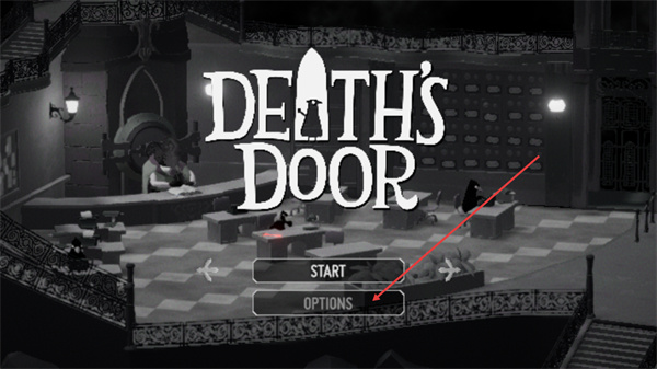 1、這是死亡之門的啟動界面,界面顯示游戲標(biāo)題及START、OPTIONS按鈕,點擊OPTIONS即可進入游戲的設(shè)置頁面調(diào)整相關(guān)選項。