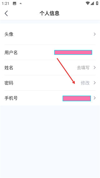 3、在個(gè)人信息頁面點(diǎn)擊密碼后的修改選項(xiàng),進(jìn)入修改密碼頁面。