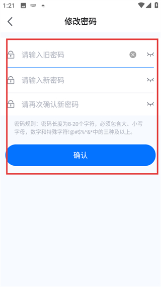 4、在修改密碼頁面填寫對(duì)應(yīng)信息后,點(diǎn)擊確認(rèn)按鈕完成密碼修改。