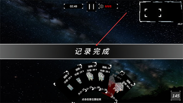 3、當界面顯示記錄完成時代表,該輪記錄任務已結(jié)束,此時可查看獲得的卡牌道具,點擊任意位置可繼續(xù)后續(xù)的游戲流程。