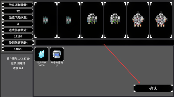 4、此界面展示了戰(zhàn)斗消耗能量等數(shù)據(jù),查看完這些信息后,點擊界面的確認按鈕,即可關(guān)閉該界面并繼續(xù)進行游戲。