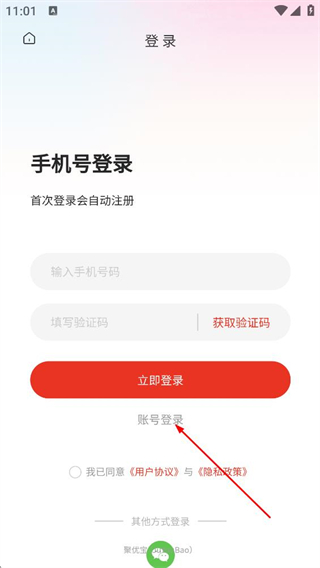 3、隨后我們可以在登錄頁,點擊賬號登錄選項,切換至賬號登錄方式。