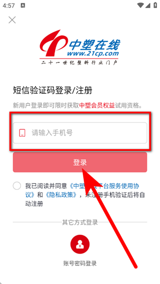3、在注冊(cè)頁(yè)面,輸入手機(jī)號(hào),點(diǎn)擊登錄獲取驗(yàn)證碼。