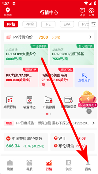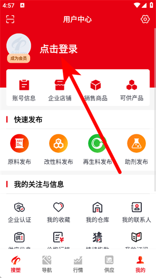 1、在中塑在線網(wǎng),點(diǎn)擊底部我的,進(jìn)入用戶中心頁(yè)面。