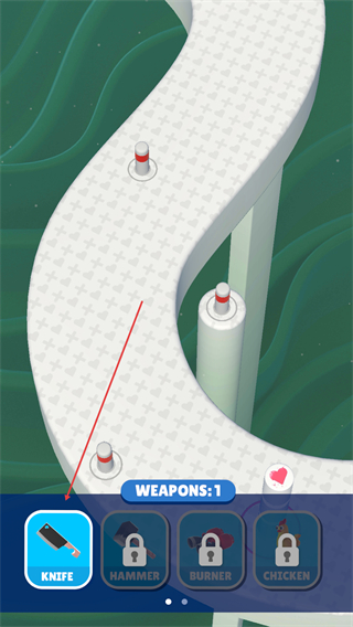 1、裝備KNIFE武器,沿路徑前進,準備拾取場景中的武器道具,提升戰(zhàn)力。