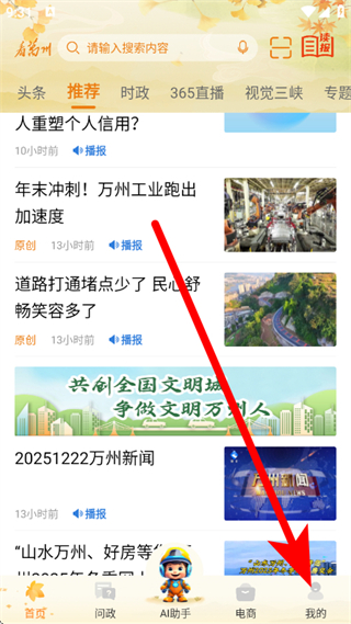 1、打開看萬州,點擊底部我的,進入個人頁面。