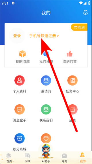 2、在我的頁面,點擊上方的登錄,進入登錄界面。