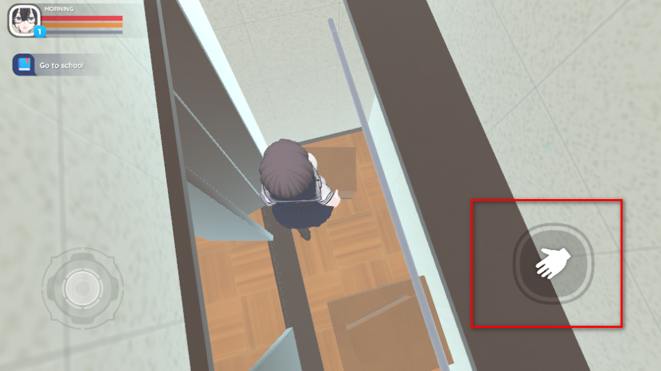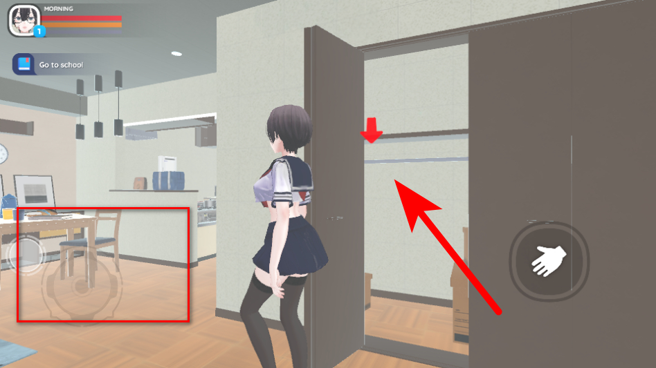 3、在室內(nèi)場景中,通過左側(cè)操控鍵移動角色,再點擊右側(cè)手掌圖標互動,打開對應(yīng)柜門。