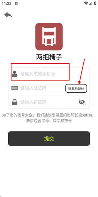 2、在注冊(cè)賬號(hào)頁(yè)面填寫(xiě)手機(jī)號(hào)碼后,點(diǎn)擊獲取驗(yàn)證碼。