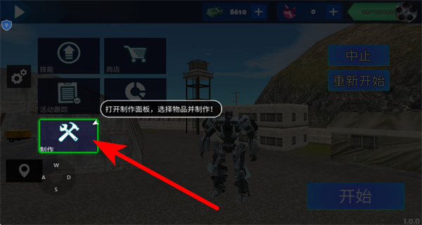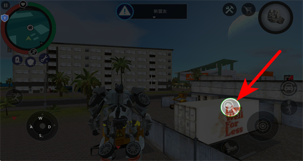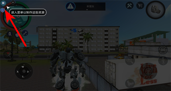1、操控機(jī)甲移動(dòng)到場(chǎng)景中帶有資源標(biāo)識(shí)的區(qū)域如圖中箱子處,靠近資源點(diǎn)以獲取制作所需的材料。