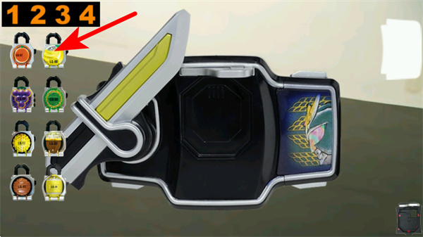 2、選中道具后,將其放置到紅色箭頭指向的變身器卡槽位置,完成道具與變身器的匹配操作。