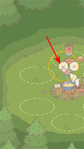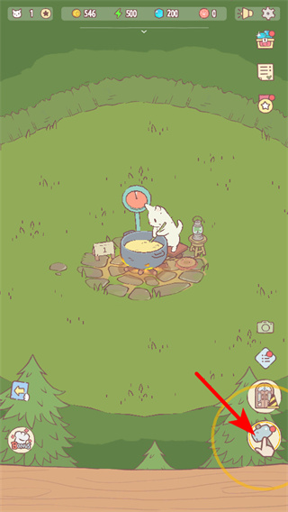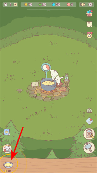 1、進(jìn)入游戲主界面后,點(diǎn)擊紅色箭頭指向的碗狀道具,收取當(dāng)前烹飪的產(chǎn)物如湯品,這是獲取資源操作。