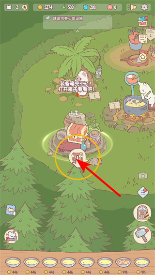 4、遇到新的互動(dòng)設(shè)施如小屋時(shí),緊跟紅色箭頭指引,點(diǎn)擊互動(dòng)按鈕觸發(fā)功能,推進(jìn)游戲的劇情與玩法進(jìn)度。