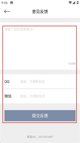 3、在意見反饋頁面,填寫建后點(diǎn)擊提交反饋按鈕,即可提交意見。