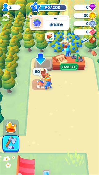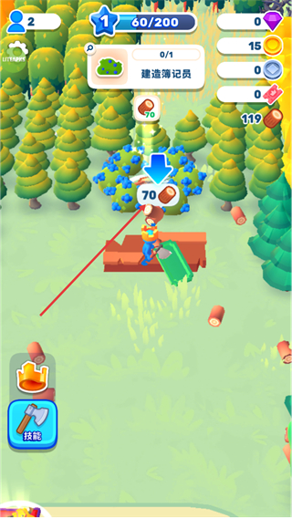 2、根據(jù)界面提示建造簿記員,收集足夠的木材資源,前往對應建造位置完成簿記員設施的搭建,推進游戲流程。