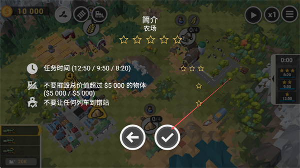 1、查看簡介中的任務(wù)控制任務(wù)時間,不摧毀超5000價值物體,不讓列車到錯站,點擊確認(rèn)開始。
