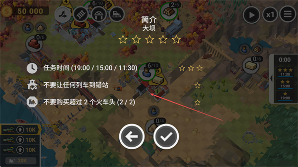 1、查看簡(jiǎn)介中的任務(wù)控制任務(wù)時(shí)間,不讓列車錯(cuò)站,不超購(gòu)2個(gè)火車頭,點(diǎn)擊確認(rèn)開(kāi)始。