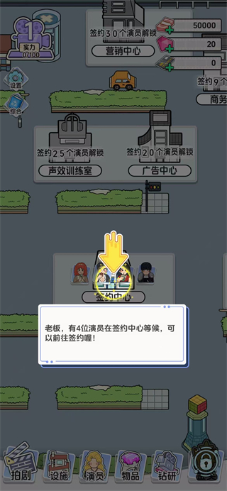 1、根據(jù)提示點(diǎn)擊簽約中心,接待等待簽約的演員,開(kāi)啟藝人招募流程。