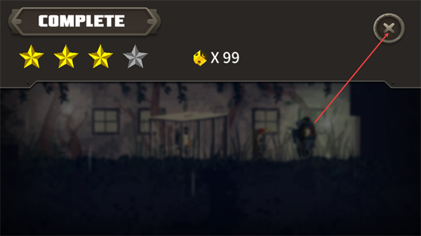 4、關(guān)卡完成后進(jìn)入COMPLETE界面,可查看獲得的星級(jí)評(píng)價(jià)與獎(jiǎng)勵(lì),點(diǎn)擊右上角的叉號(hào)關(guān)閉該界面返回關(guān)卡選擇。