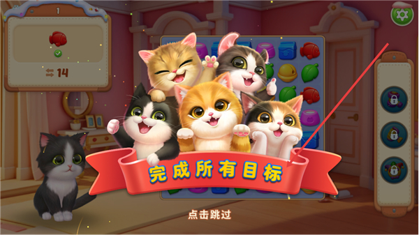 4、完成所有消除目標后,出現(xiàn)完成所有目標提示,點擊跳過即可結(jié)束關(guān)卡。