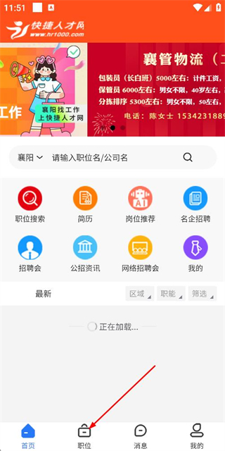 1、在快速人才網(wǎng)首頁(yè)點(diǎn)擊底部的職位選項(xiàng),進(jìn)入職位列表頁(yè)面。