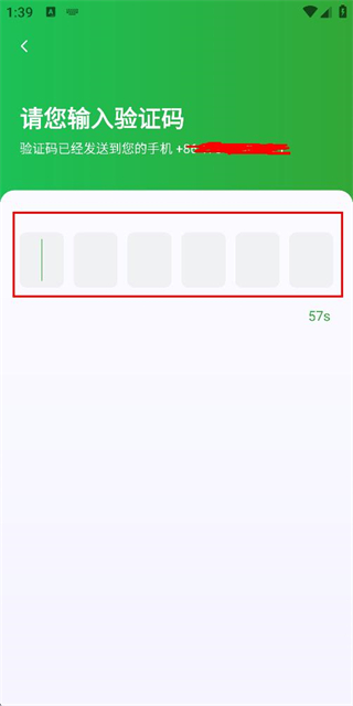 3、在輸入短信驗證碼頁面填寫收到的驗證碼,完成賬號的登錄操作。