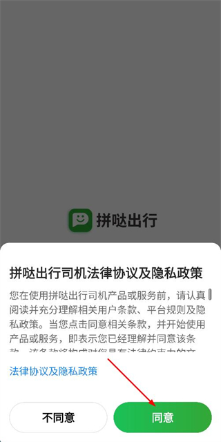 1、在使用協(xié)議隱私政策彈窗中點擊同意按鈕,進入登錄頁面。