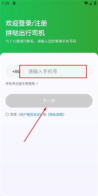 2、在登錄頁面填寫手機號,勾選協(xié)議后,點擊下一步獲取驗證碼。