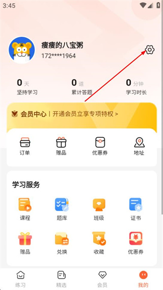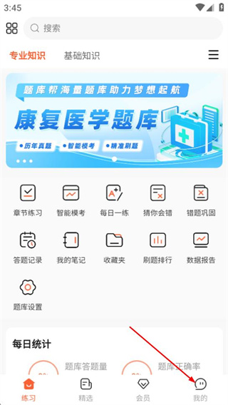 1、進入練習(xí)頁面后,點擊底部的我的選項,可進入個人中心頁面。