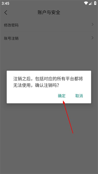 5、在彈窗中,點擊確定按鈕即可確認賬號注銷操作。