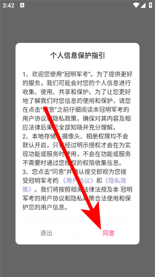 1、打開冠明軍考,在彈窗中點擊同意,進(jìn)入登錄頁面。