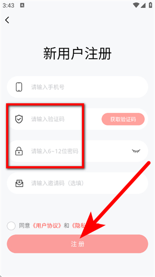 4、輸入驗證碼,設(shè)置密碼,勾選后,點擊注冊,完成新用戶注冊。