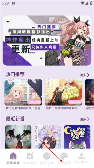 1、在動漫APP首頁,點擊底部的繪畫星球選項,進入繪畫星球頁面。
