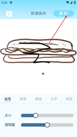 4、在新建畫布頁面完成繪制后,點擊右上角的保存的按鈕,保存創(chuàng)作內(nèi)容。