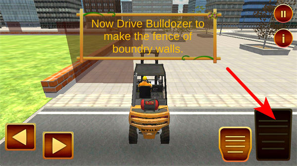 4、按提示駕駛推土機時,依照箭頭指引操作界面按鈕,操控車輛完成圍墻圍欄的建造,順利推進關(guān)卡任務。
