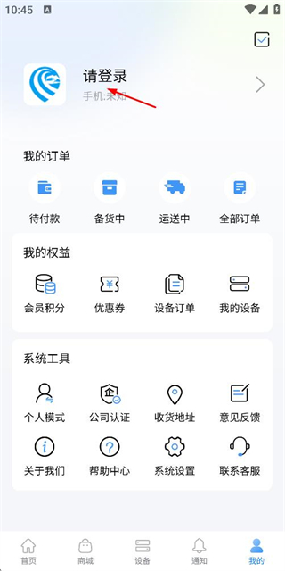 2、在個人中心頁面點擊登錄,進入登錄頁面。