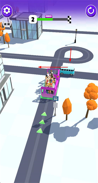 2、駕駛巴士沿路線行駛,規(guī)避障礙保障通行,順利運(yùn)送乘客至目的地。