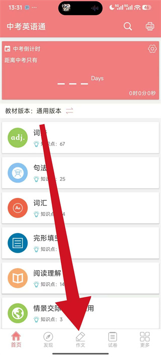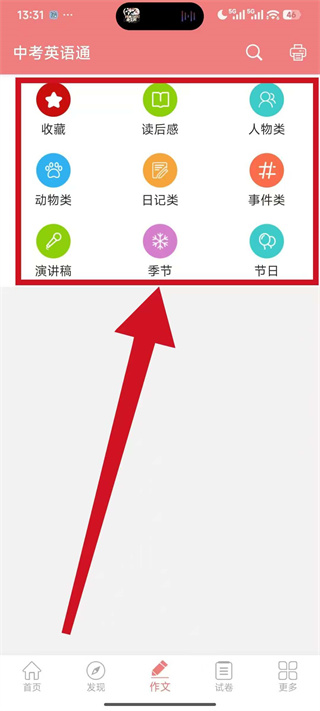 1、打開中考英語通,點(diǎn)擊底部導(dǎo)航欄的作文,進(jìn)入作文分類頁面。