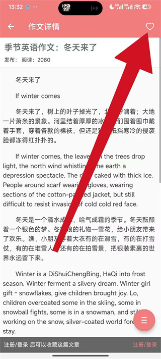 4、在作文詳情頁可以閱讀完整的作文內(nèi)容,還能進(jìn)行收藏等操作。