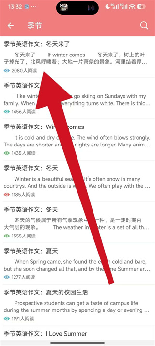 3、在季節(jié)主題的作文列表中,選擇想要查看的具體作文,點(diǎn)擊進(jìn)入作文詳情頁。