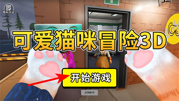 1、進(jìn)入游戲界面后,點(diǎn)擊開(kāi)始游戲按鈕開(kāi)啟冒險(xiǎn),這是進(jìn)入游戲的關(guān)鍵操作,準(zhǔn)確點(diǎn)擊才能進(jìn)入貓咪冒險(xiǎn)場(chǎng)景。