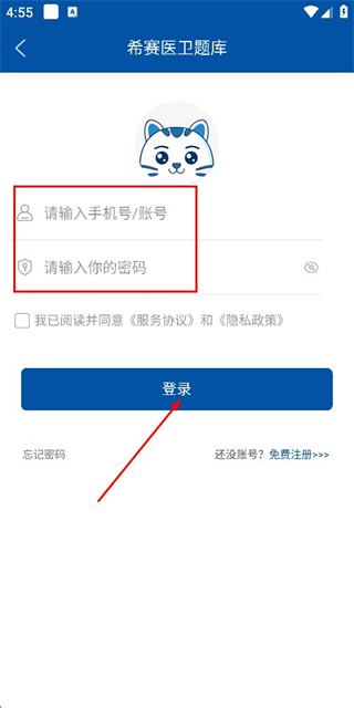 3、在登錄頁(yè)面填寫手機(jī)號(hào)和密碼,勾選協(xié)議后,點(diǎn)擊登錄完成賬號(hào)登錄操作