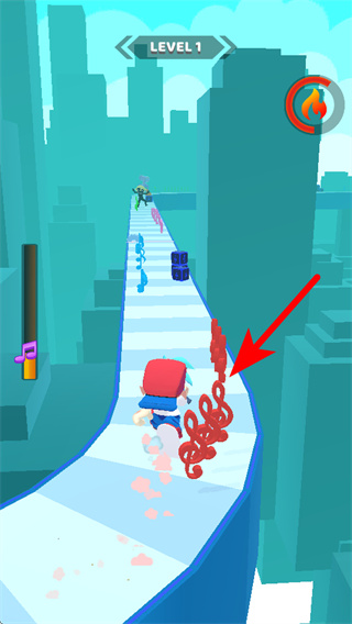 4、按箭頭指引操控角色向目標(biāo)方向移動(dòng),靠近關(guān)卡終點(diǎn)的對(duì)手,完成跑酷關(guān)卡的最終挑戰(zhàn)目標(biāo)。
