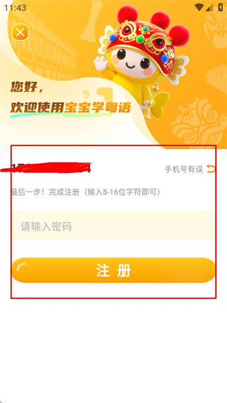 4、在注冊頁面,輸入密碼后點擊注冊按鈕即可完成賬號注冊。