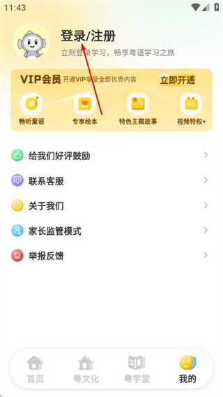 1、進入寶寶學粵語后,點擊底部的我的選項,可進入個人中心頁面。
