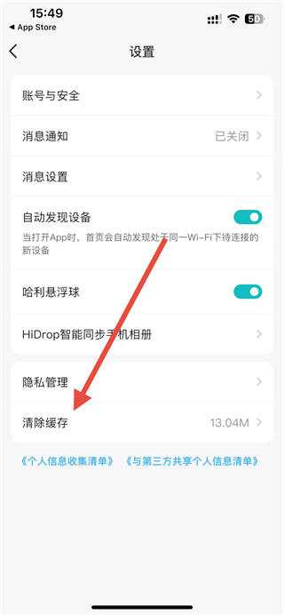 3、在設(shè)置界面中,點(diǎn)擊清除緩存選項(xiàng),即可觸發(fā)緩存清理操作,釋放App占用的存儲(chǔ)空間。