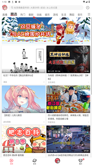 1、啟動(dòng)AcFun手機(jī)客戶端,點(diǎn)擊底部導(dǎo)航欄發(fā)現(xiàn)圖標(biāo)即可跳轉(zhuǎn)頁(yè)面。
