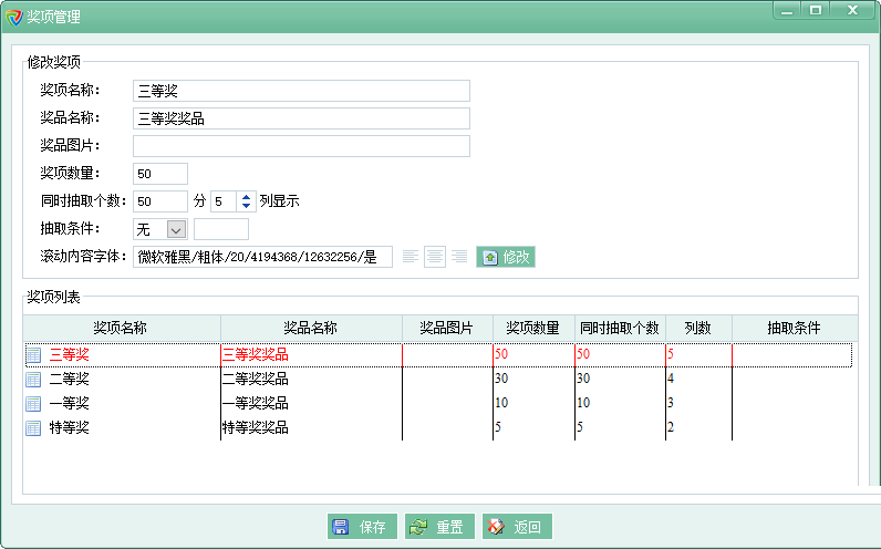 最大支持10個獎項(xiàng);支持現(xiàn)場臨時追加獎品數(shù)量及獎項(xiàng)。